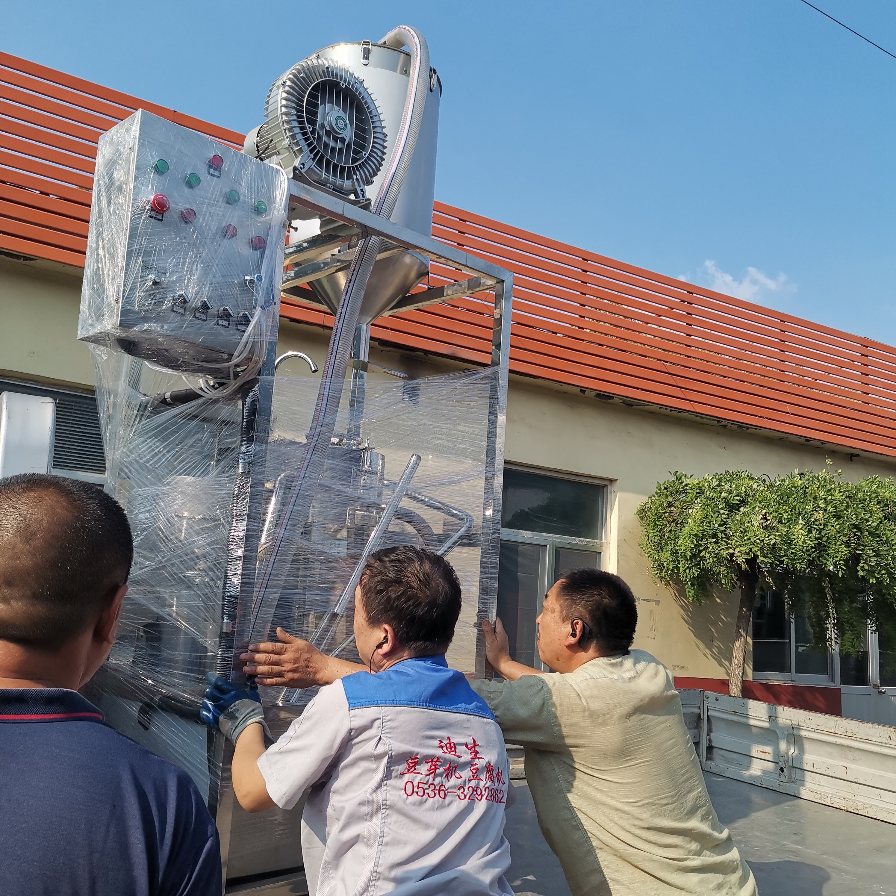 迪生——東營客戶定的雙聯磨豆腐機發貨